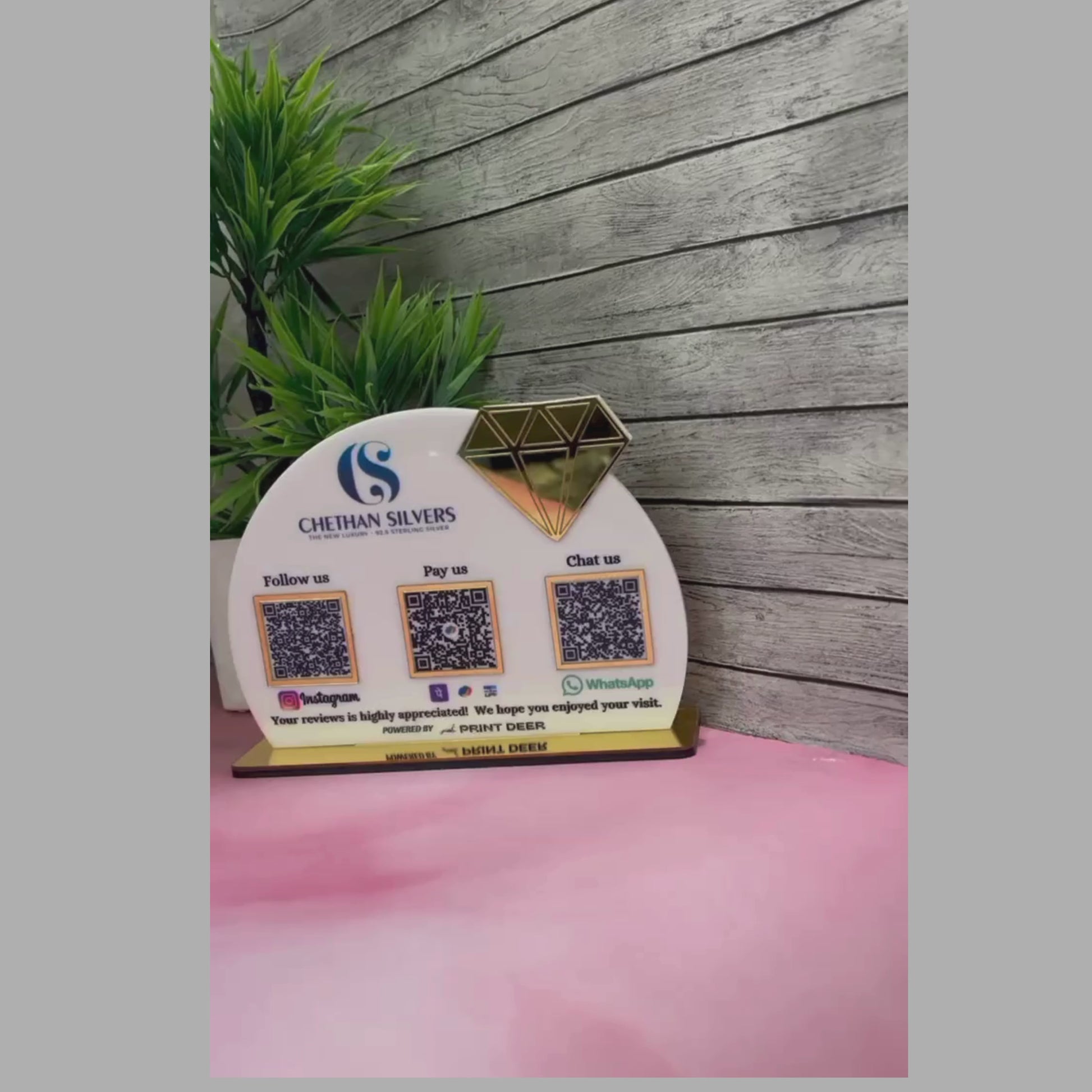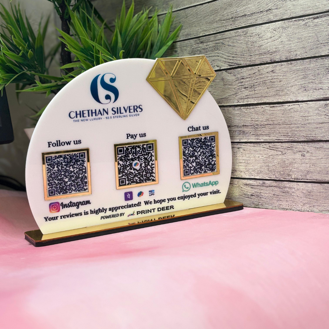 3 QR |PREMIUM CUSTOMISED QR STANDEE WITH GOLD MIRROR DIAMOND ELEMMENT