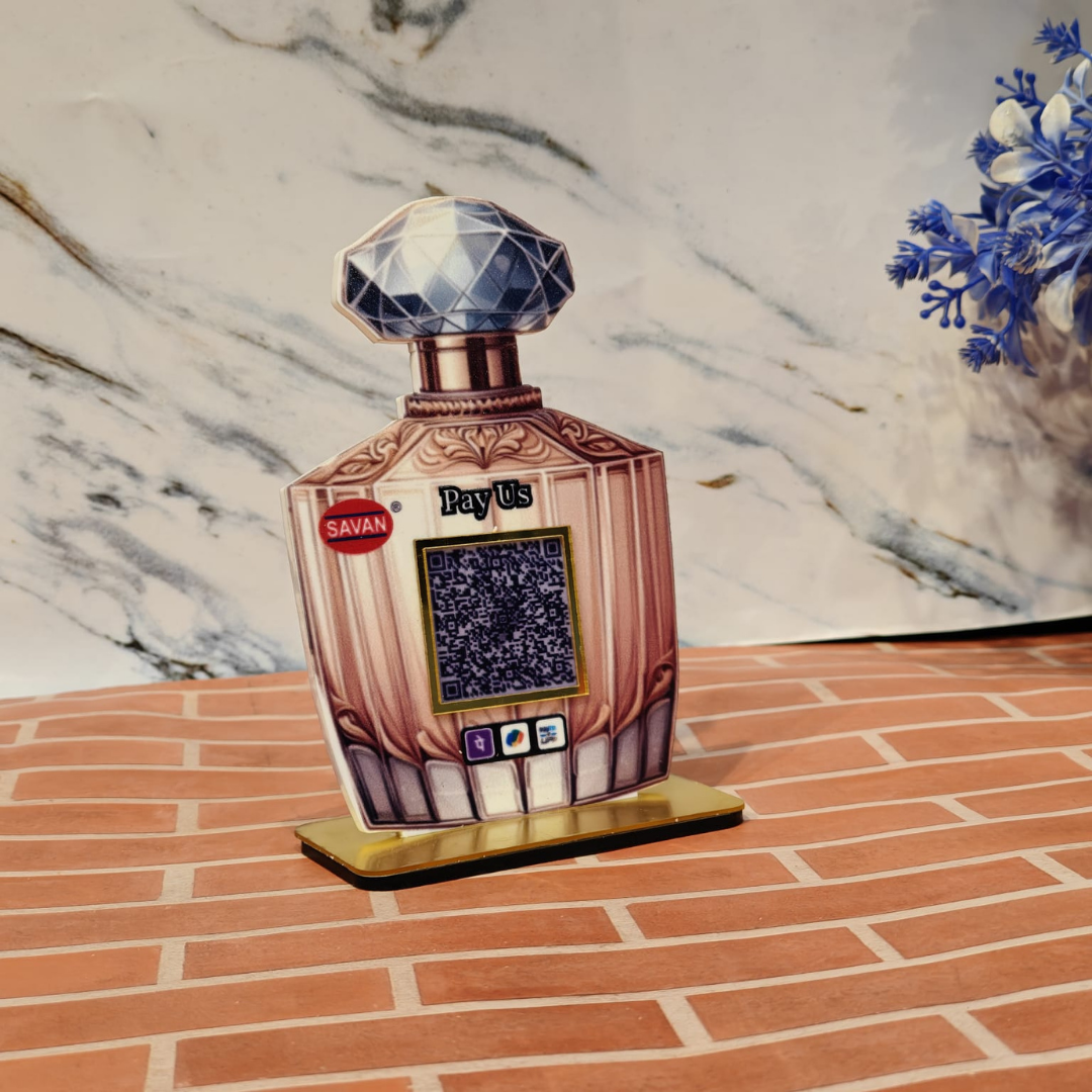 Premium luxury-style QR standee designed specially for perfume brands, cosmetic stores & beauty counters